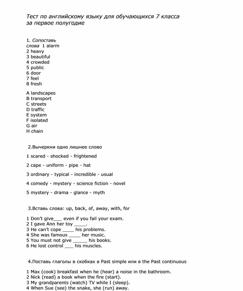 Тест по английскому языку для обучающихся 7 класса