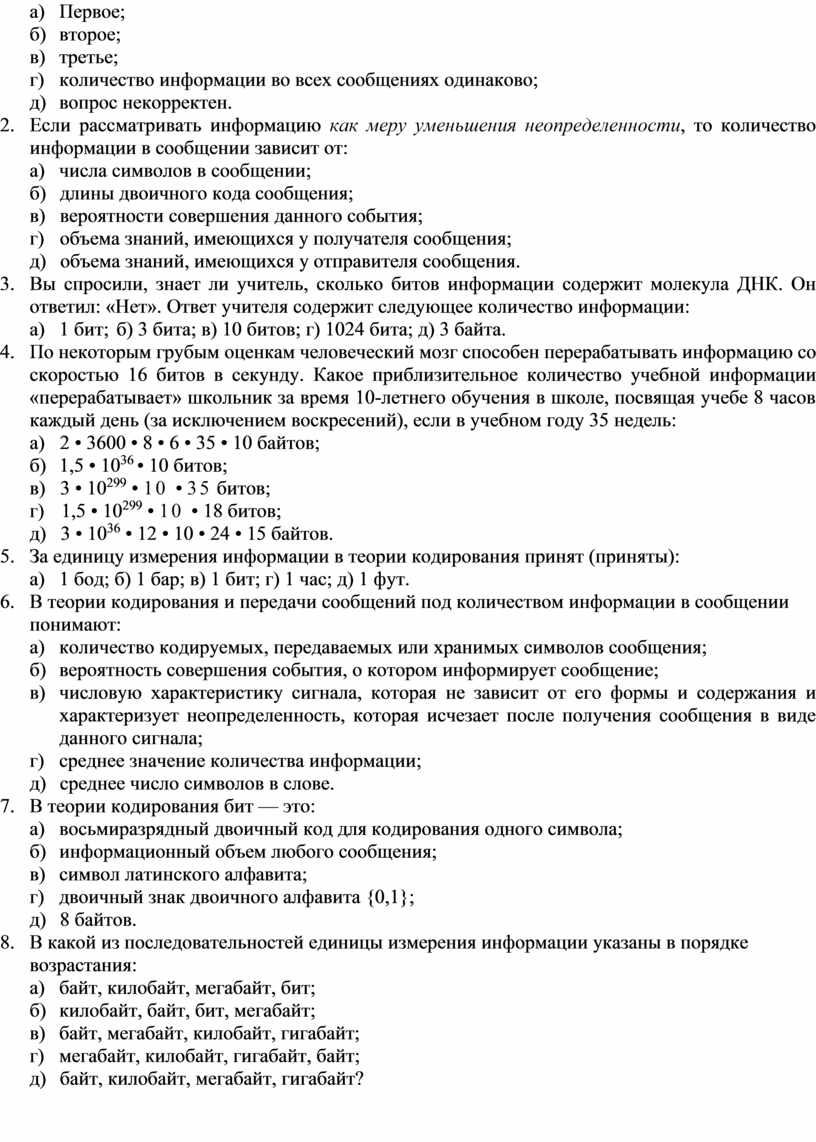 а) количество кодируемых, передаваемых или хранимых символов сообщения;