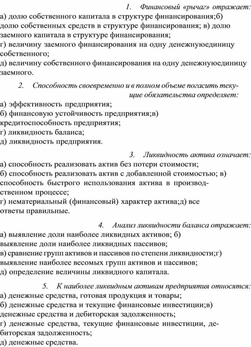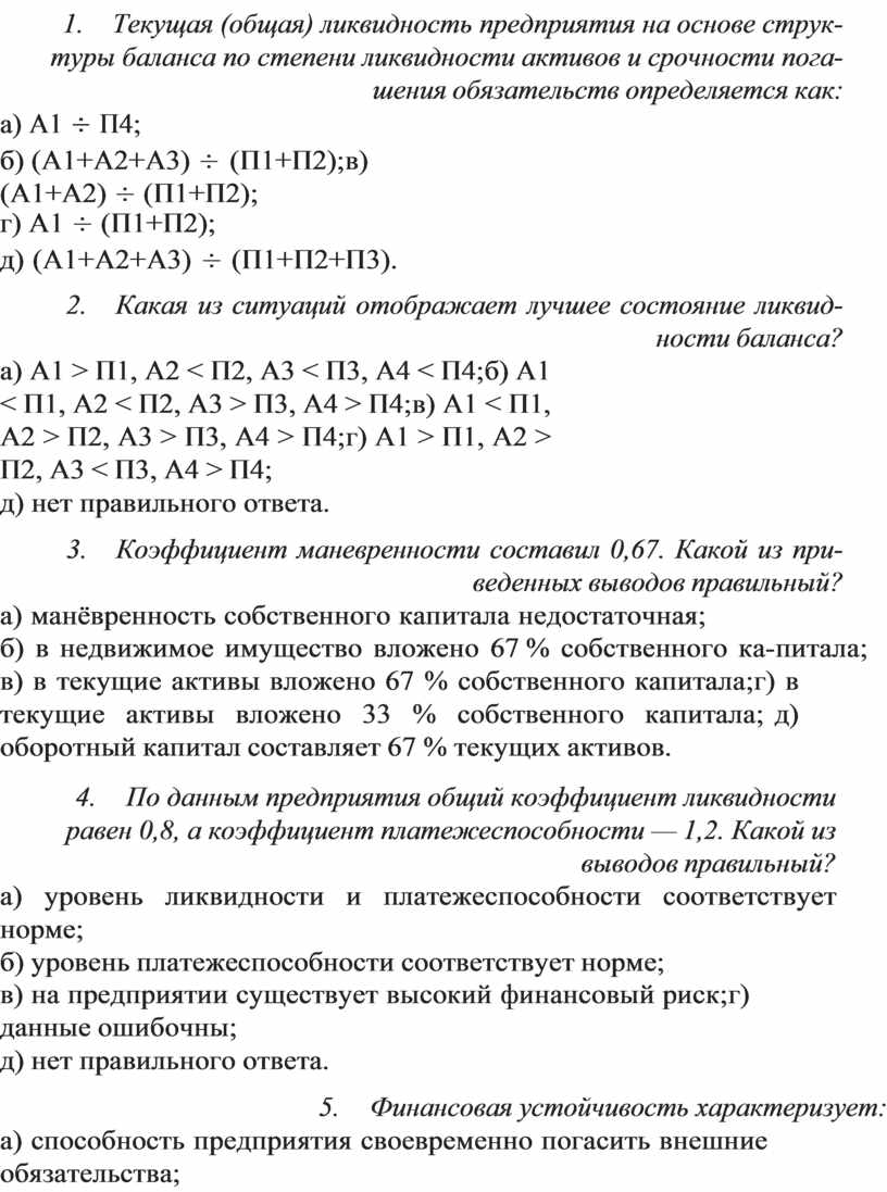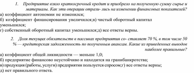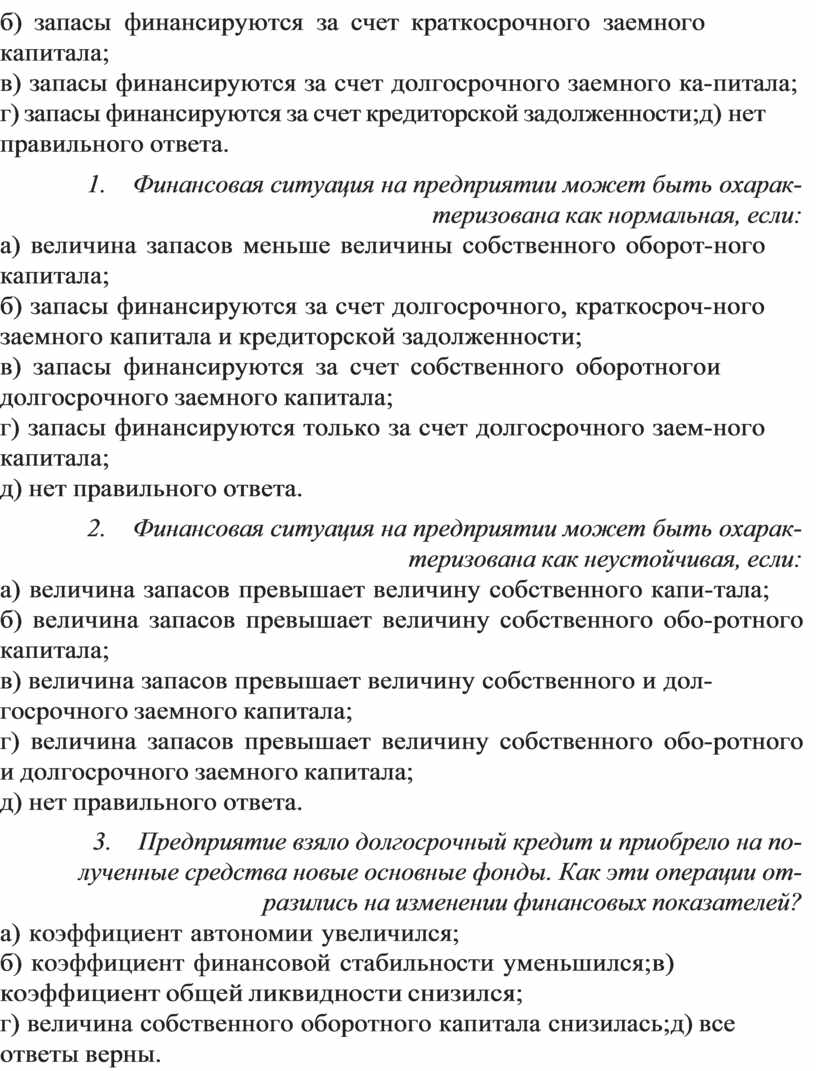 г) финансовая устойчивость предприятия высокая; д) нет правильного ответа.