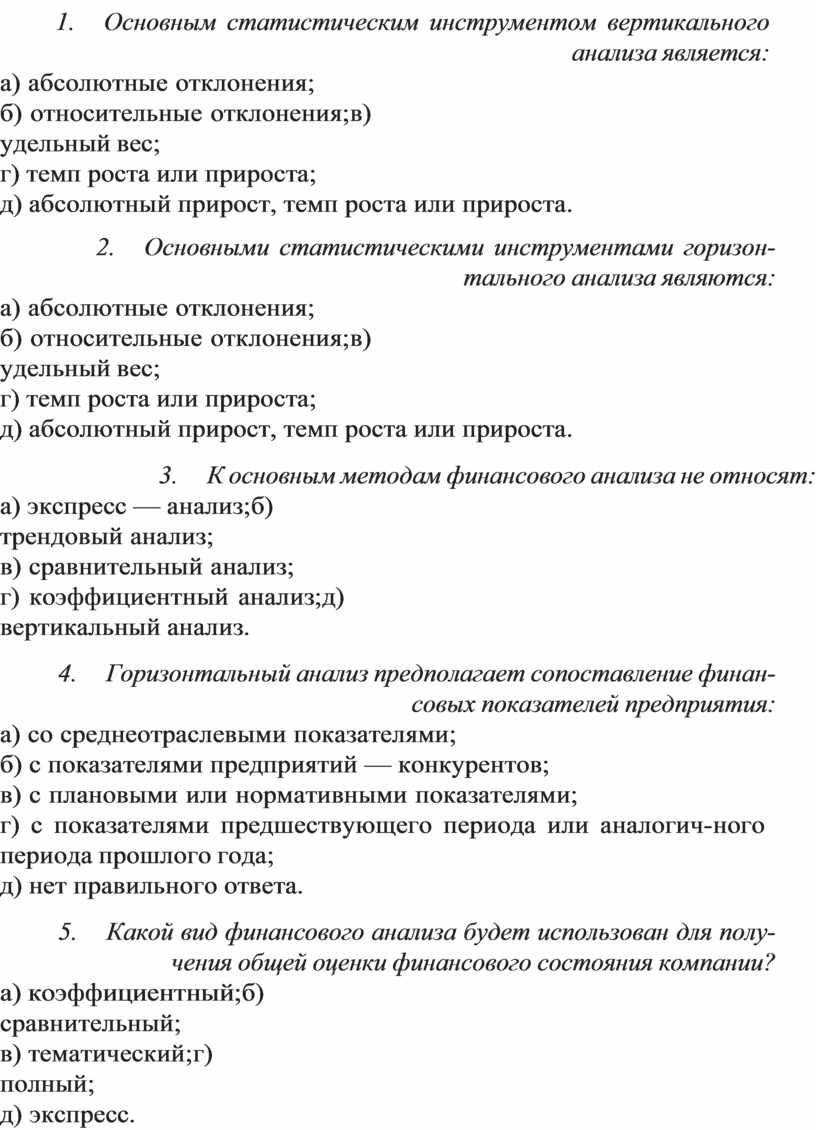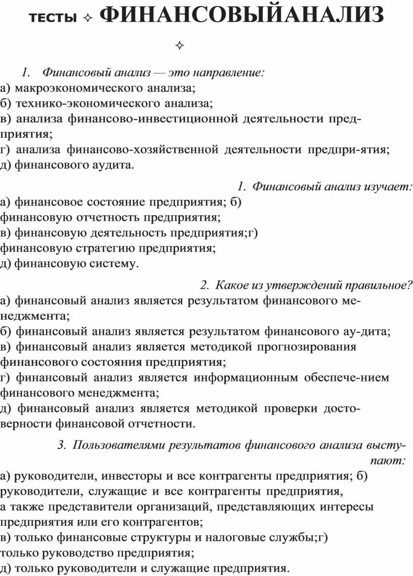 ТЕСТЫ ² ФИНАНСОВЫЙ АНАЛИЗ