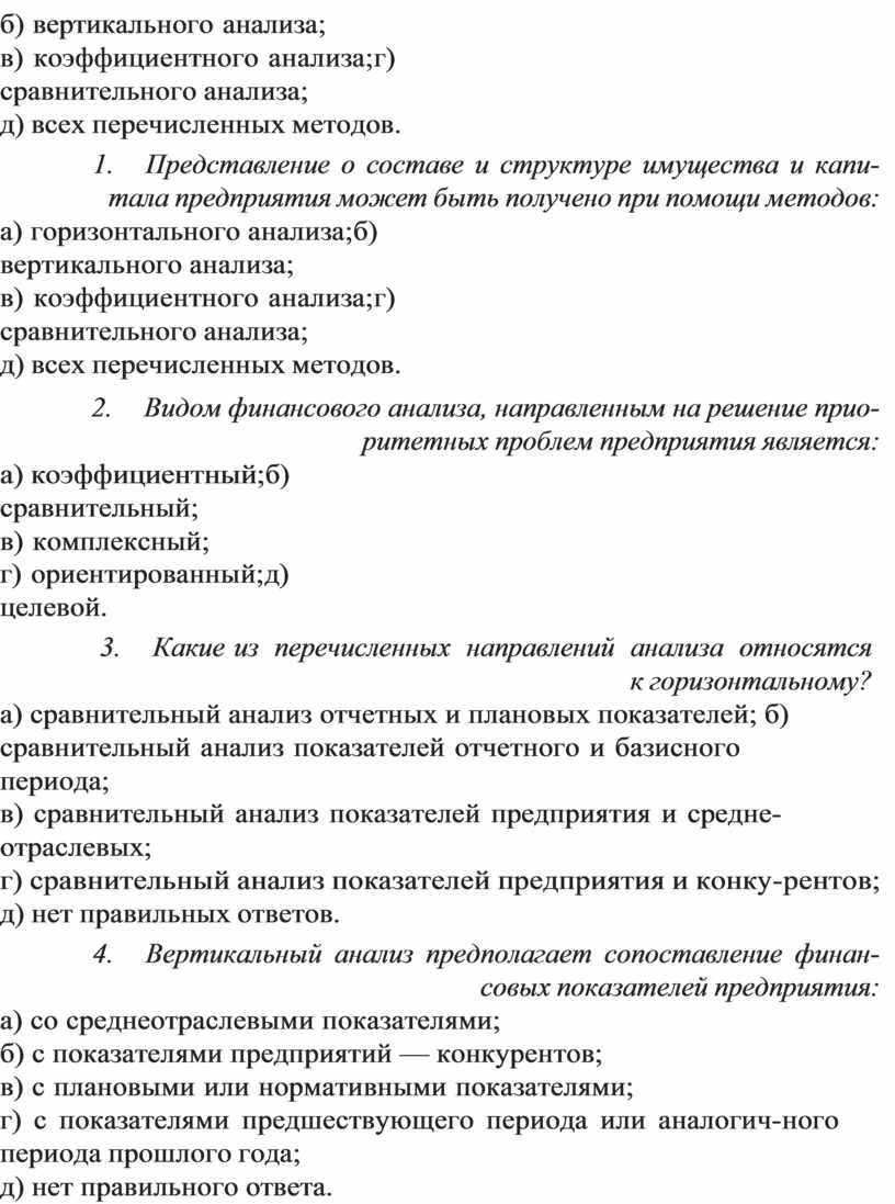 д) финансовый анализ является методикой проверки досто- верности финансовой отчетности.