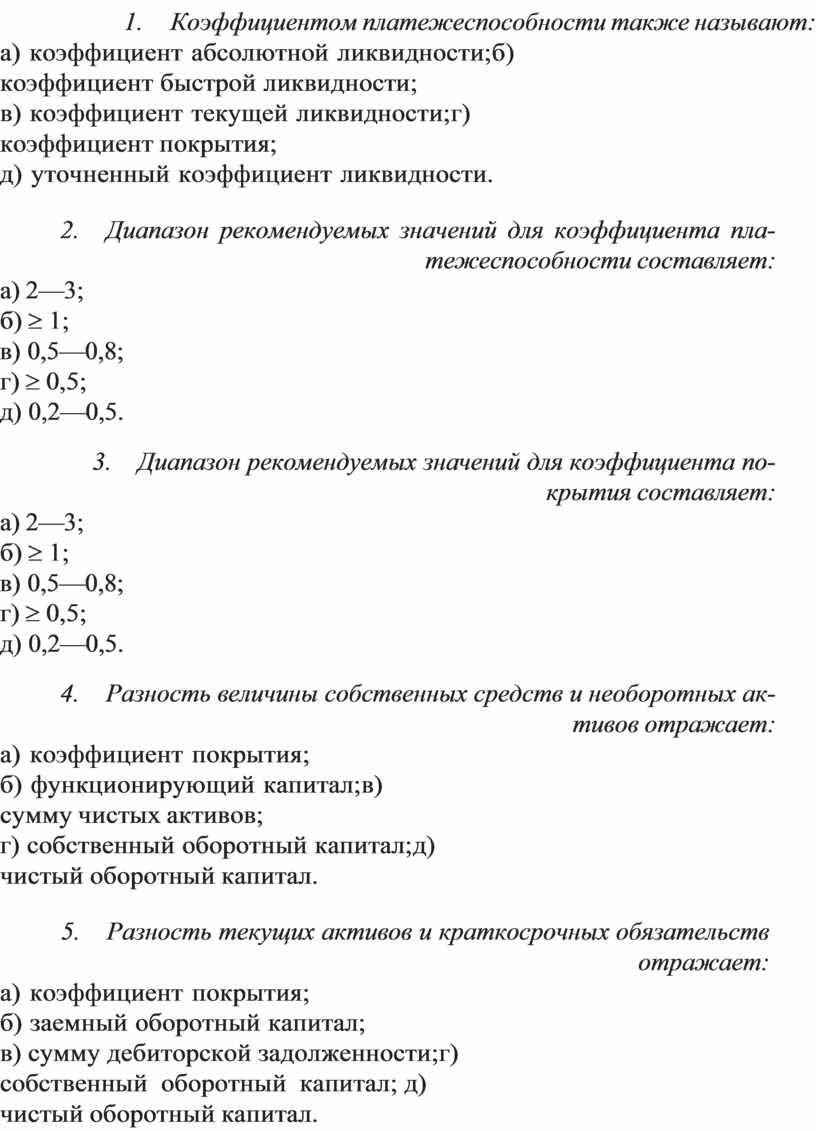 г) собственный оборотный капитал уменьшился; д) все ответы верны.