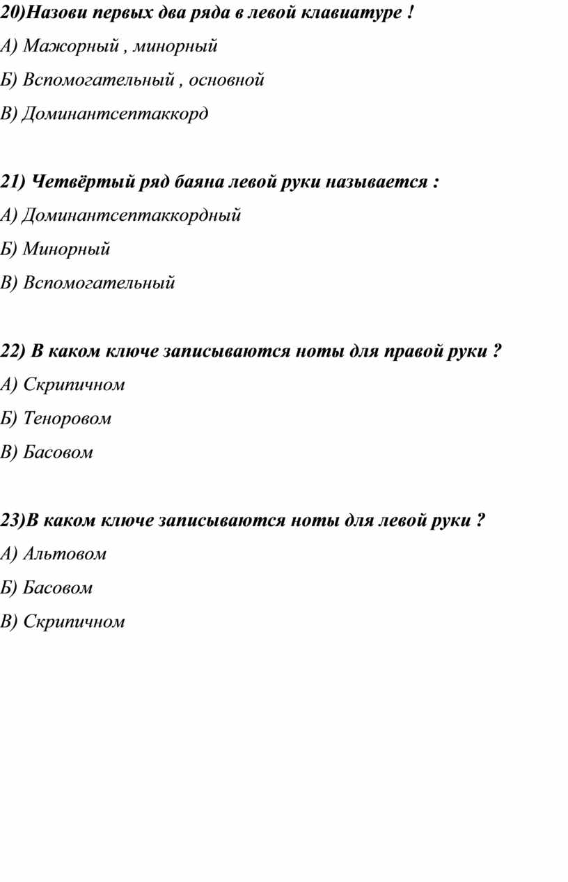 1.Как обозначается вспомогательный ряд на левой клавиатуре баяна?