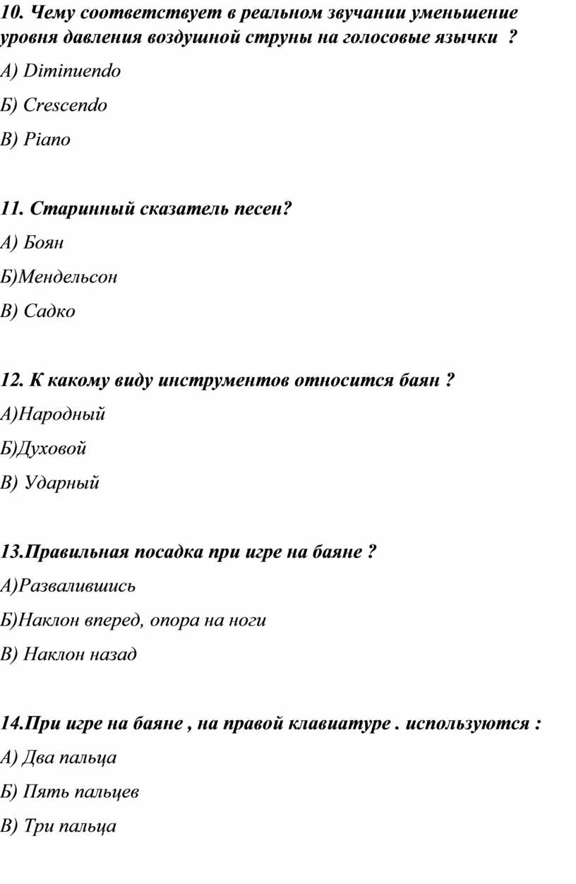 13.Правильная посадка при игре на баяне ?