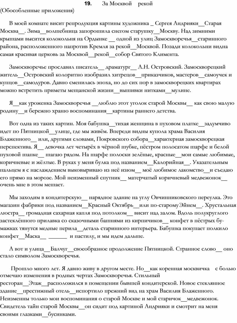 Я__как уроженка Замоскворечья __люблю этот уголок старой Москвы__ как свою малую родину__и бережно храню воспоминания__картины раннего детства.