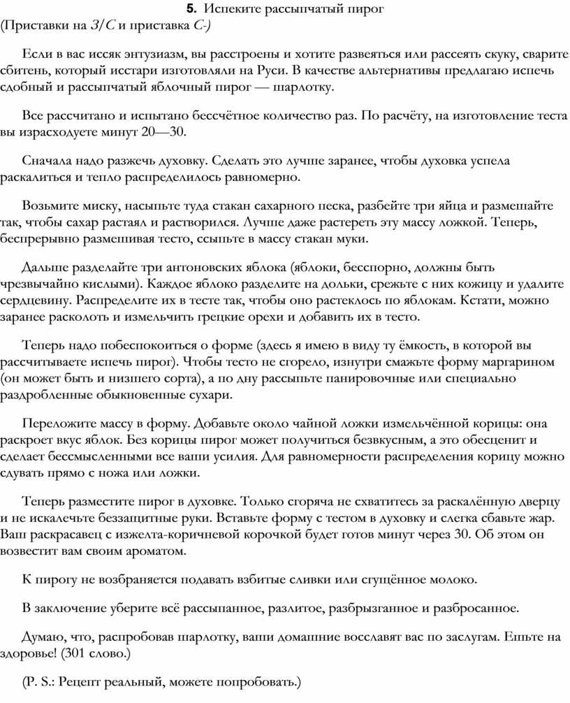 Думаю, что, распробовав шарлотку, ваши домашние восславят вас по заслугам. Ешьте на здоровье! (301 слово.)