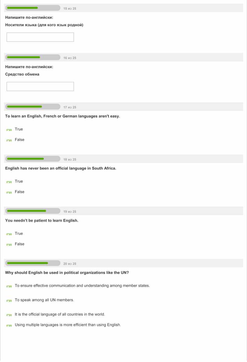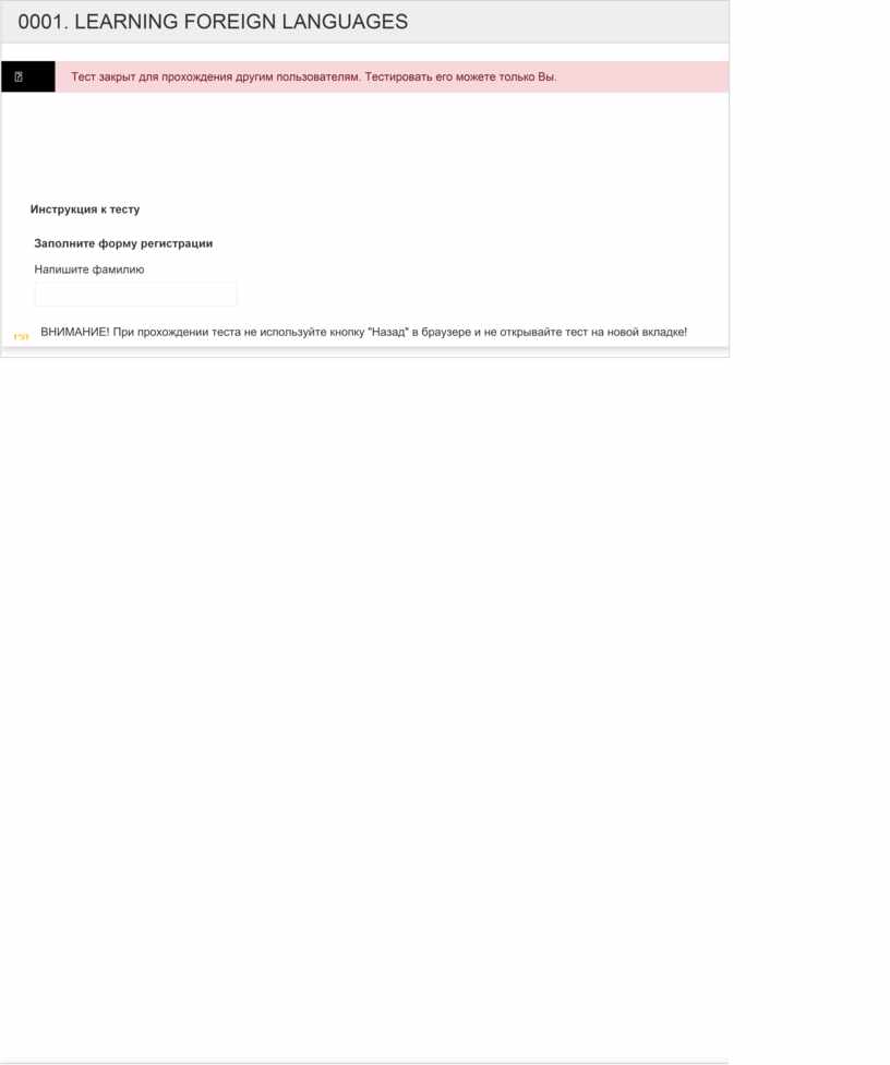 Тест закрыт для прохождения другим пользователям. Тестировать его можете только Вы. |