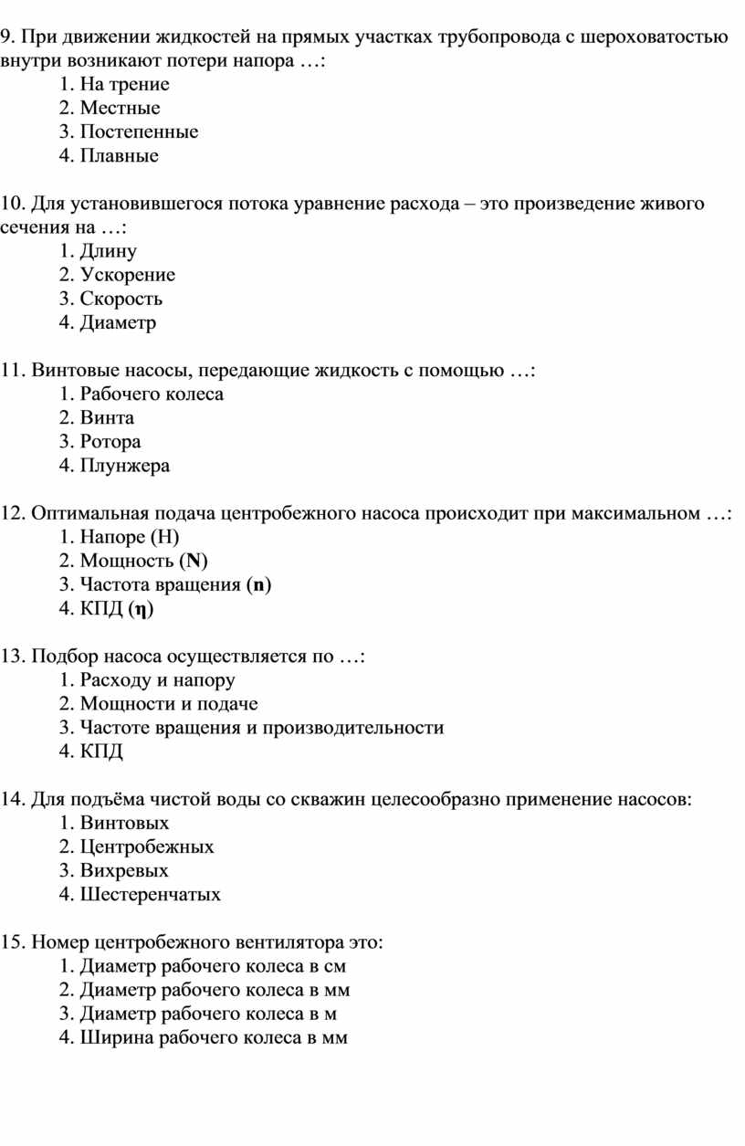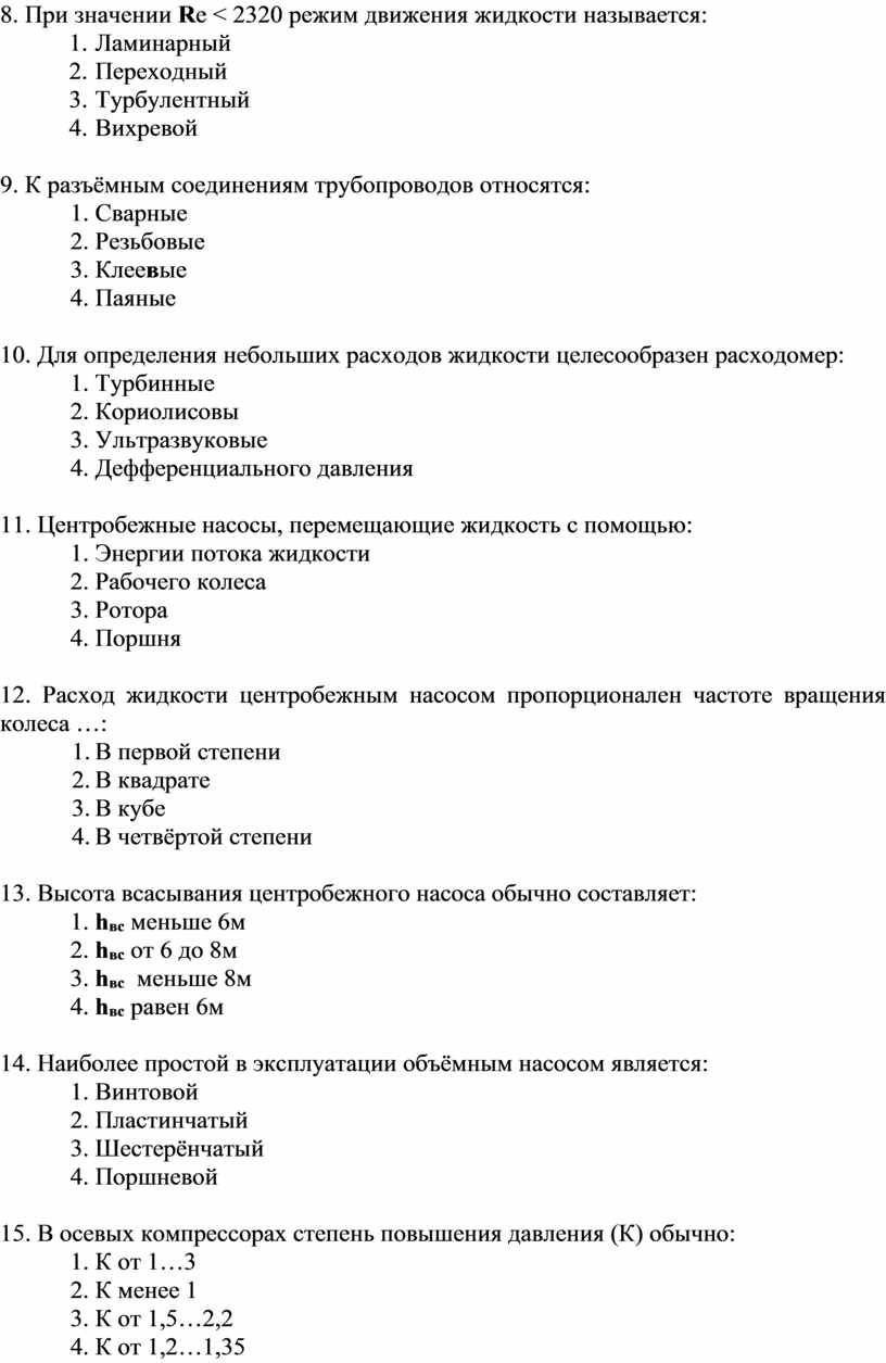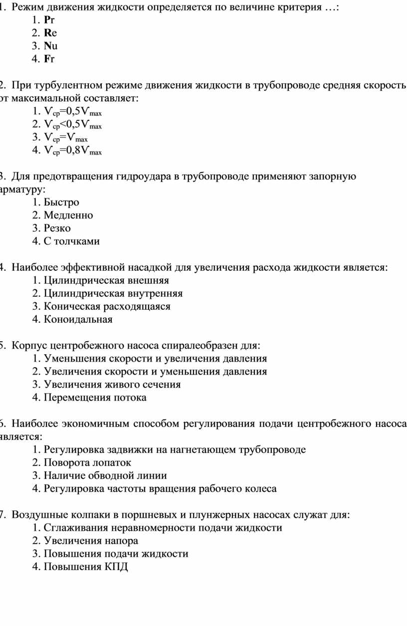 9. При турбулентном режиме движения жидкости в трубопроводе средняя скорость от максимальной составляет: