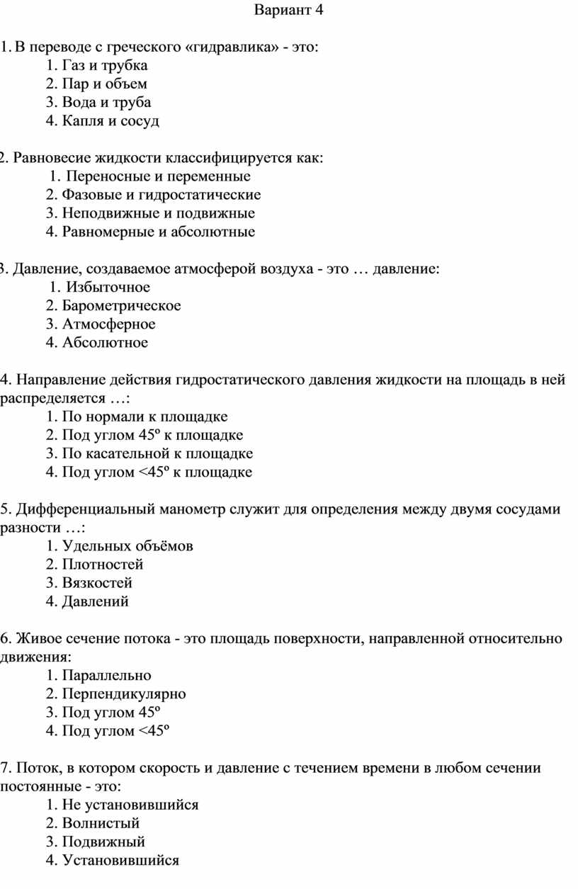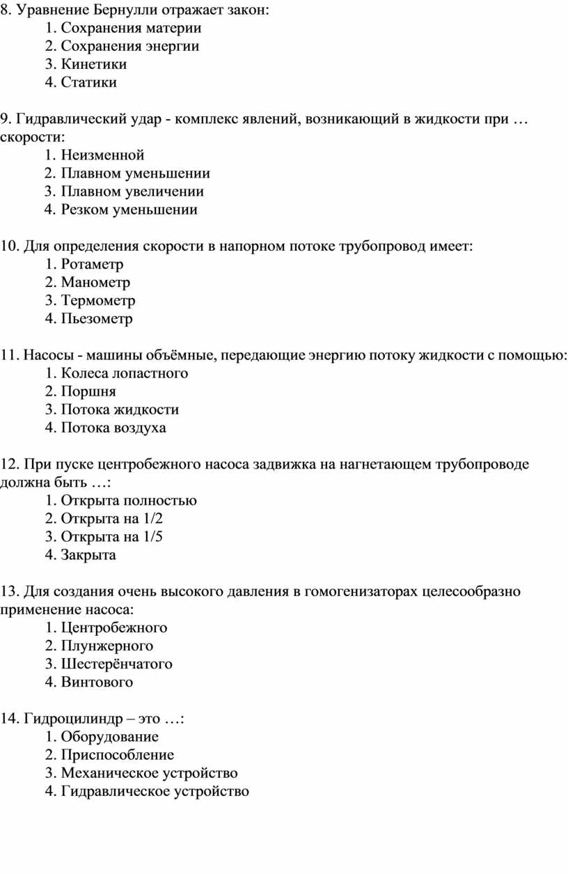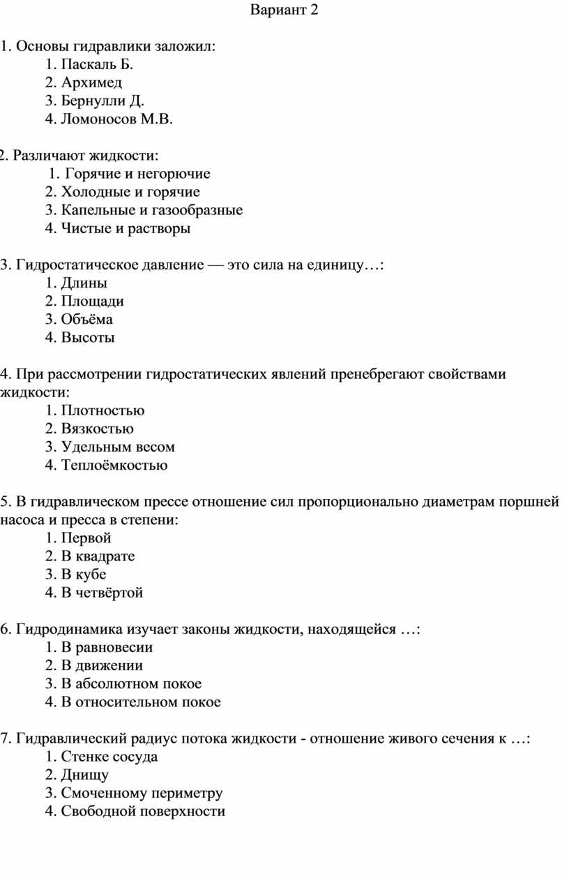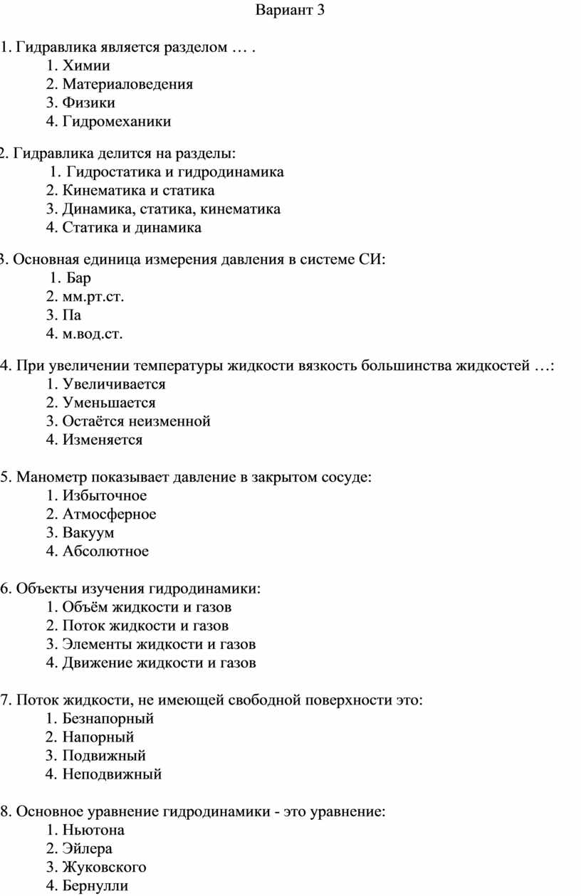 1. Гидравлика - наука, изучающая законы жидкостей: