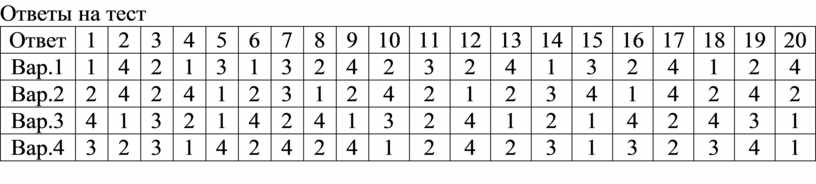 Ответы на тест