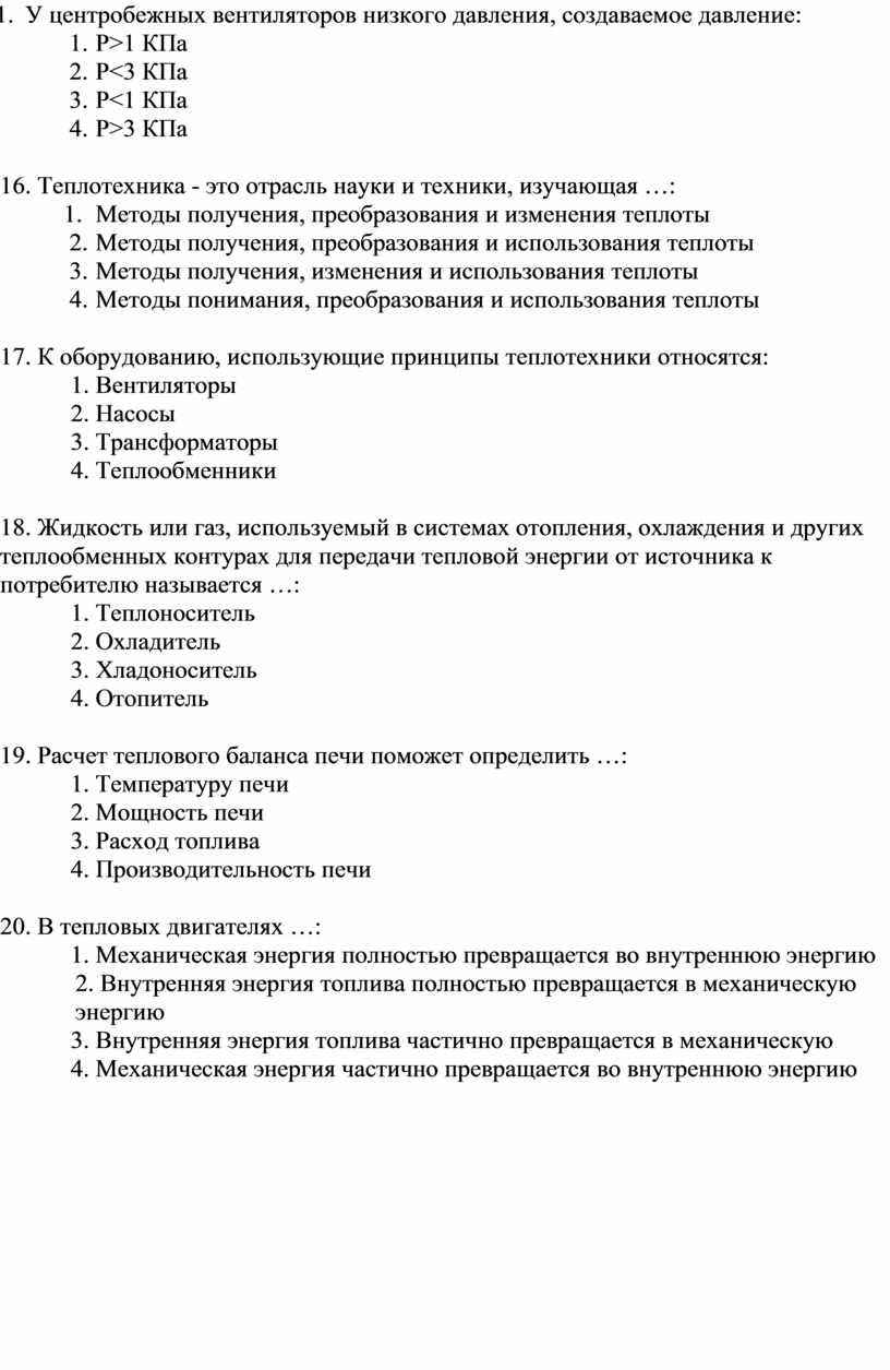 17. К оборудованию, использующие принципы теплотехники относятся:
