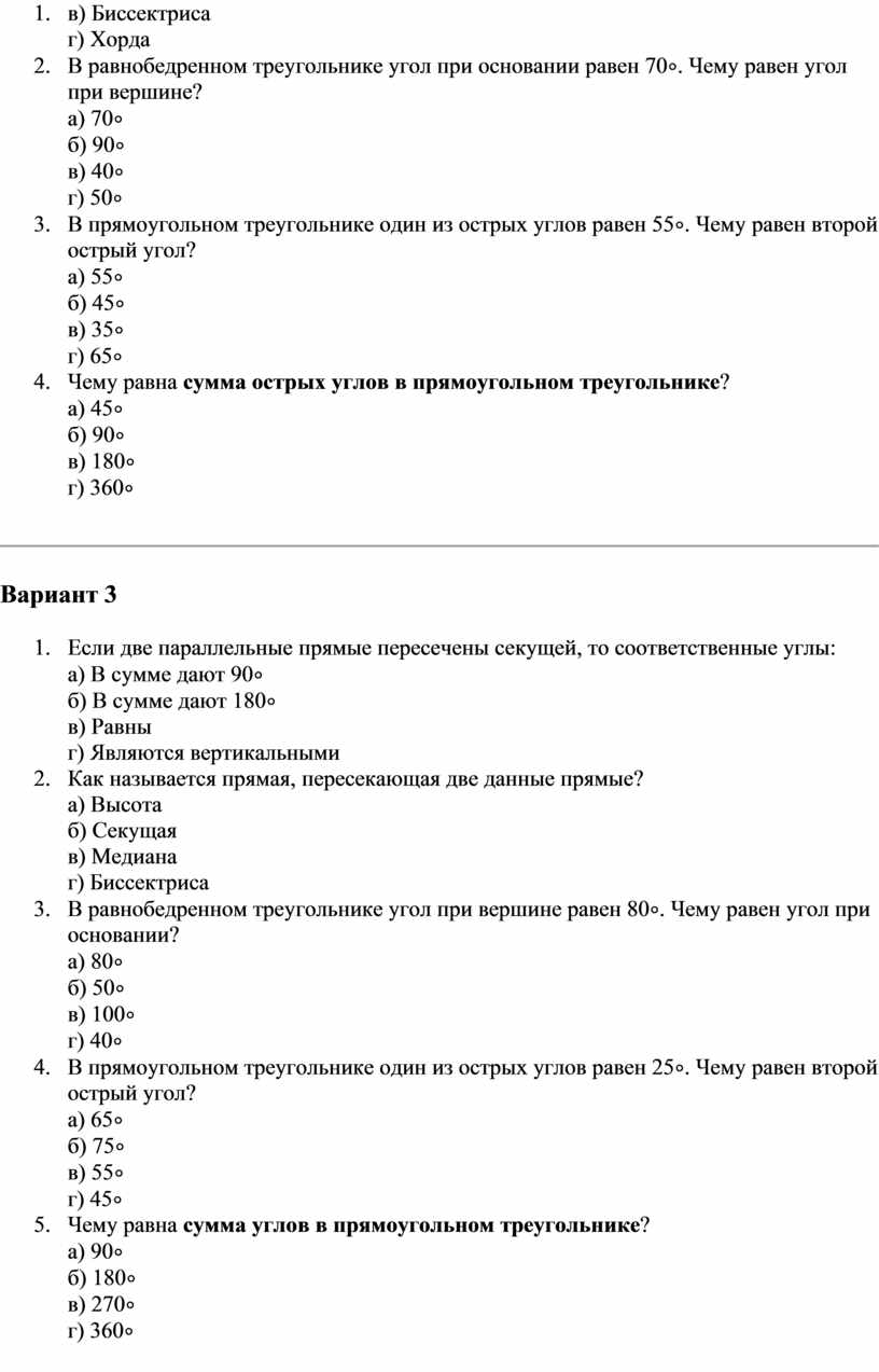 Количество вопросов в каждом варианте: 5