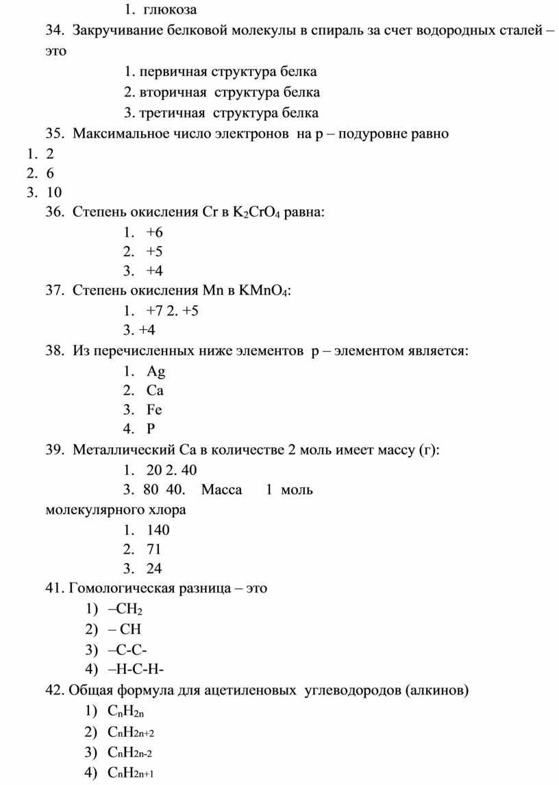 3) d – элементом 6. Число молей H2 (н.у.) занимающих объем 44,8 л равно: