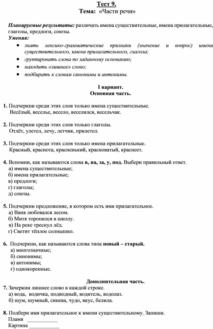 Тема: «Части речи»