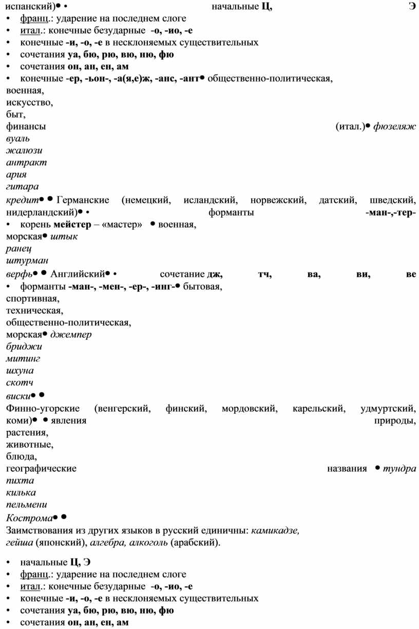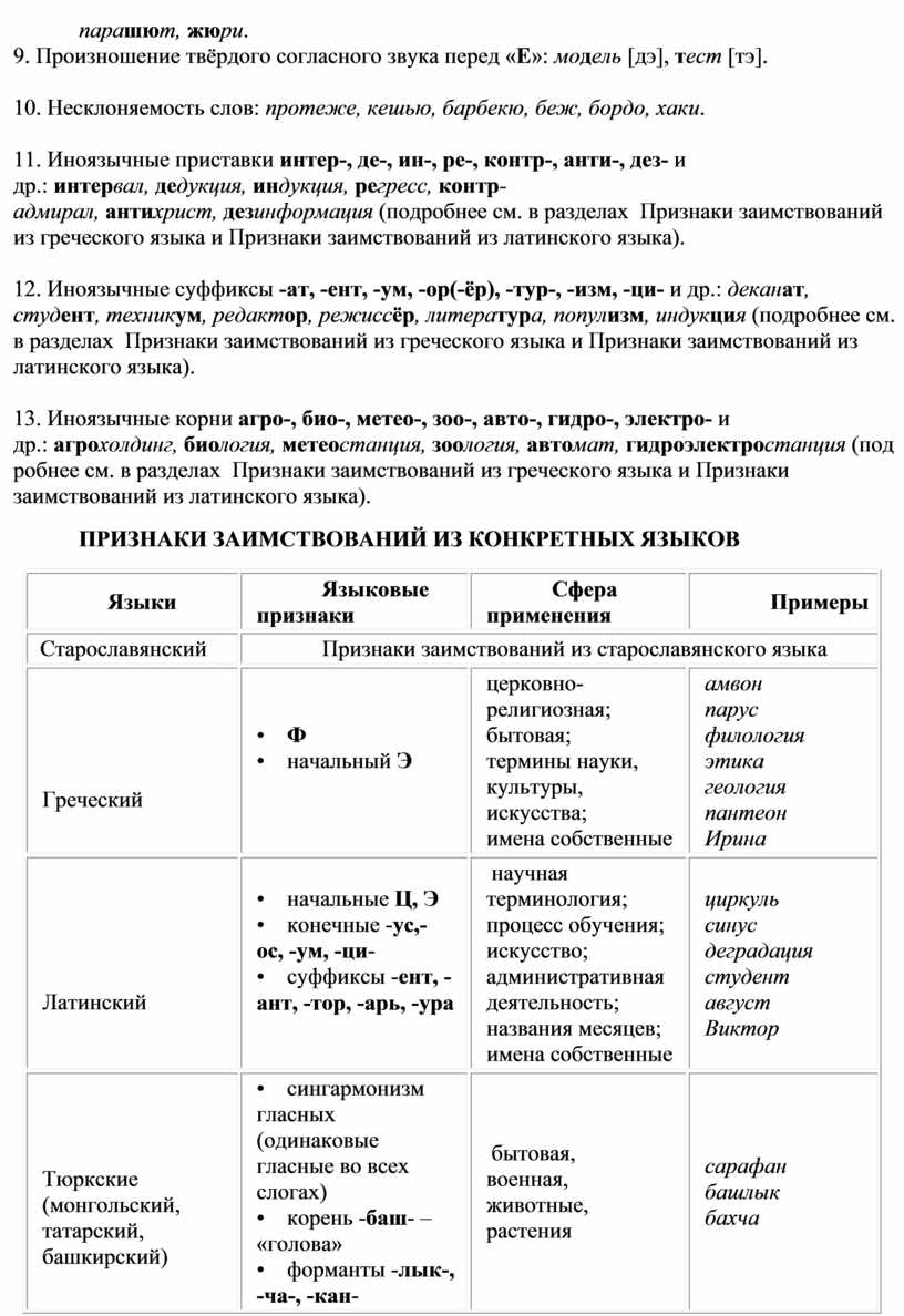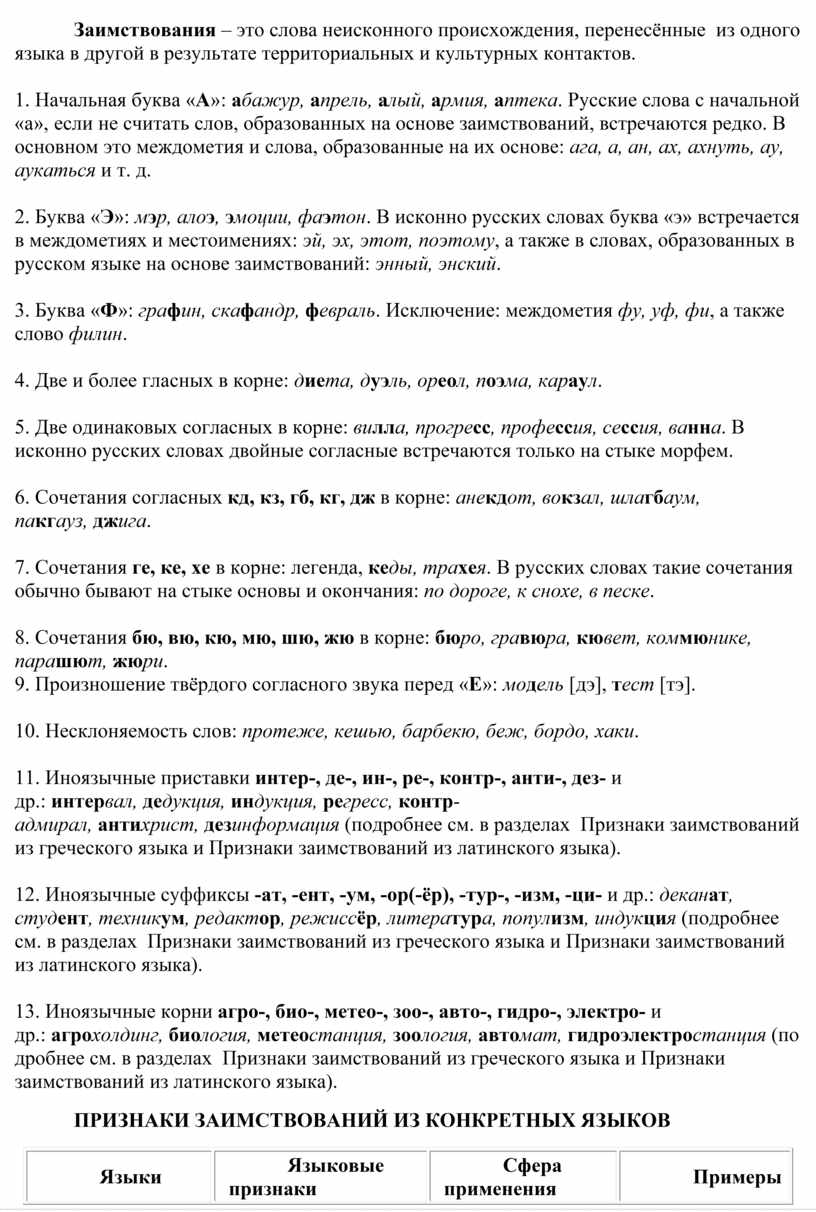 территориальных и культурных контактов. ПРИЗНАКИ ЗАИМСТВОВАНИЙ ИЗ КОНКРЕТНЫХ ЯЗЫКОВ
