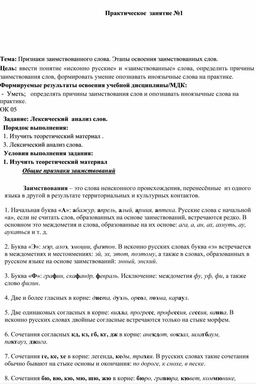 Тема: Признаки заимствованного слова. Этапы освоения заимствованных слов.