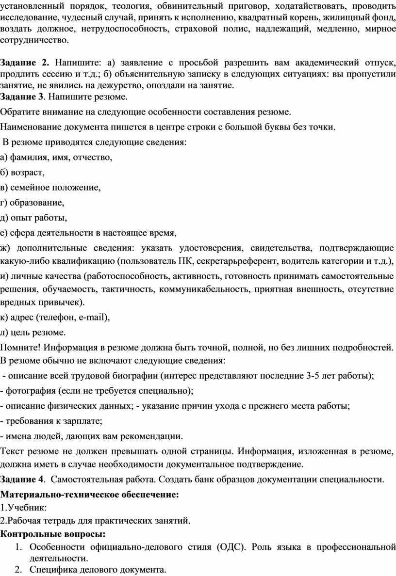 Задание 2. Напишите: а) заявление с просьбой разрешить вам академический отпуск, продлить сессию и т.д.; б) объяснительную записку в следующих ситуациях: вы пропустили занятие, не явились на дежурство, опоздали на занятие.