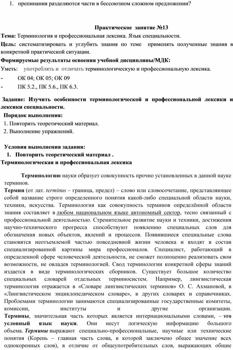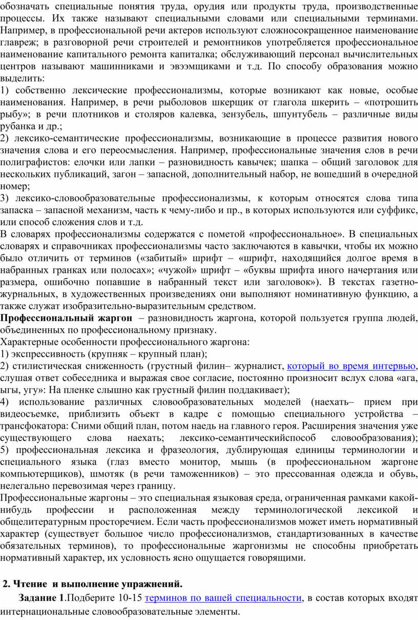 Задание 3. Проанализируйте текст по специальности, выделяя профессиональную лексику.