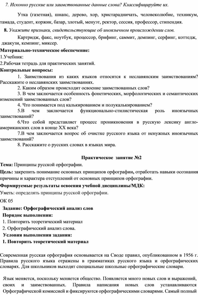 7. Исконно русские или заимствованные данные слова? Классифицируйте их.