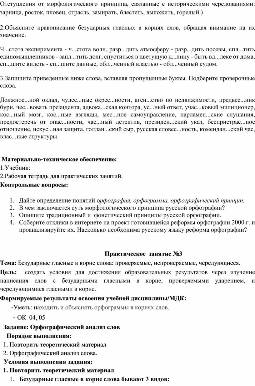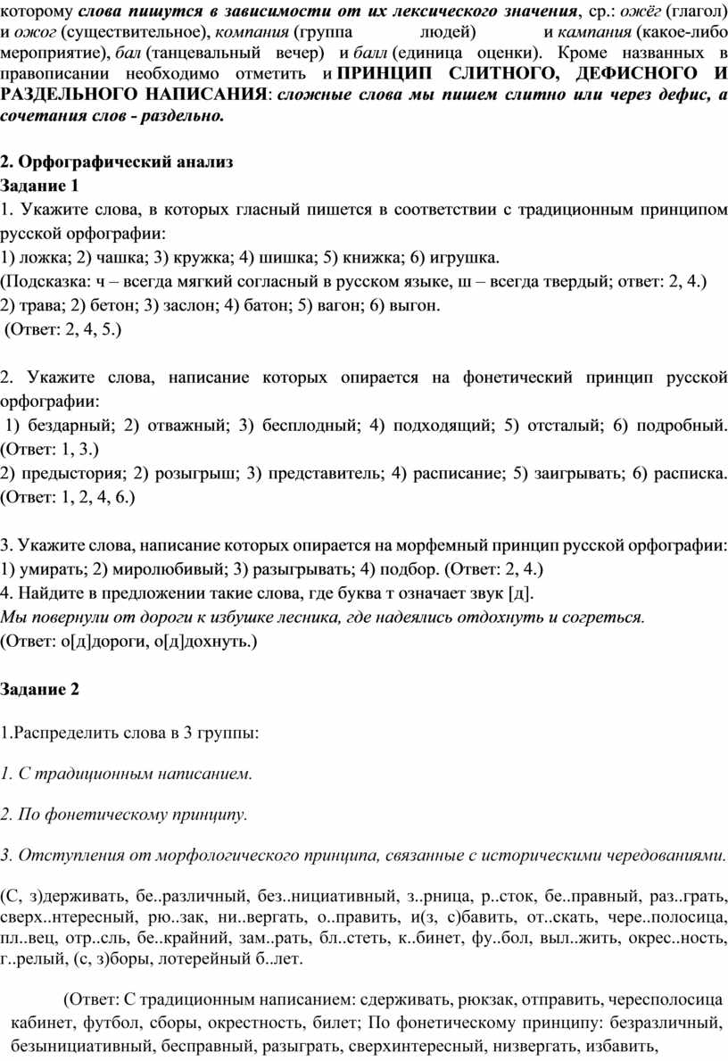 Цель: закрепить понимание основных принципов орфографии, отработать навыки осознания причины и характера отступлений от основных принципов орфографии.
