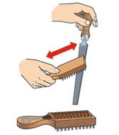 1. После остановки вращения сверла убрать стружку и опилки со станка с помощью щётки-смётки. С пазов станочного стола опилки и пыль собрать лопаточкой. Не сдувать стружку и не сметать её руками.