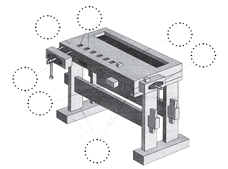Задание 5. Ознакомься с конструкцией столярного верстака в учебной мастерской. Расставь на рисунке около выносных линий цифры, соответствующие частям верстака.