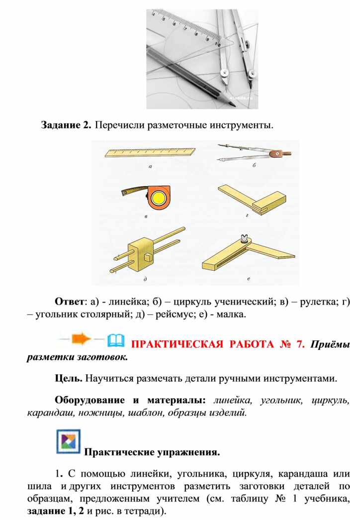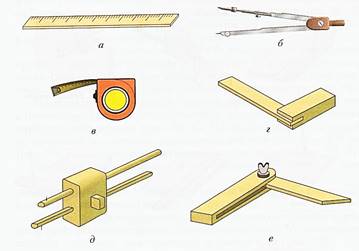 Верстак, линейка, угольник, шило или кернер.