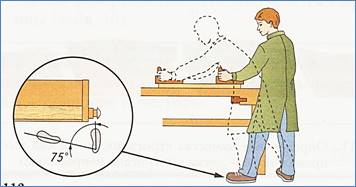 5. Закрепить заготовку передним зажимным устройством верстака и проверить надежность её крепления (см. рис. 7 учебника).