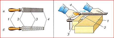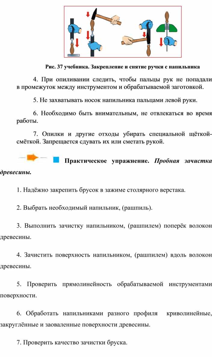 закрепить заготовку в тисках (см. рис. 67 из учебника).