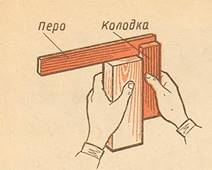 6. Положить заготовку на крышку столярного верстака, определить места крепления гребёнки и клинка, установить их и закрепить заготовку с помощью задней зажимной коробки. Клин должен выступать над крышкой стола на высоту, меньшую, чем высота заготовки.