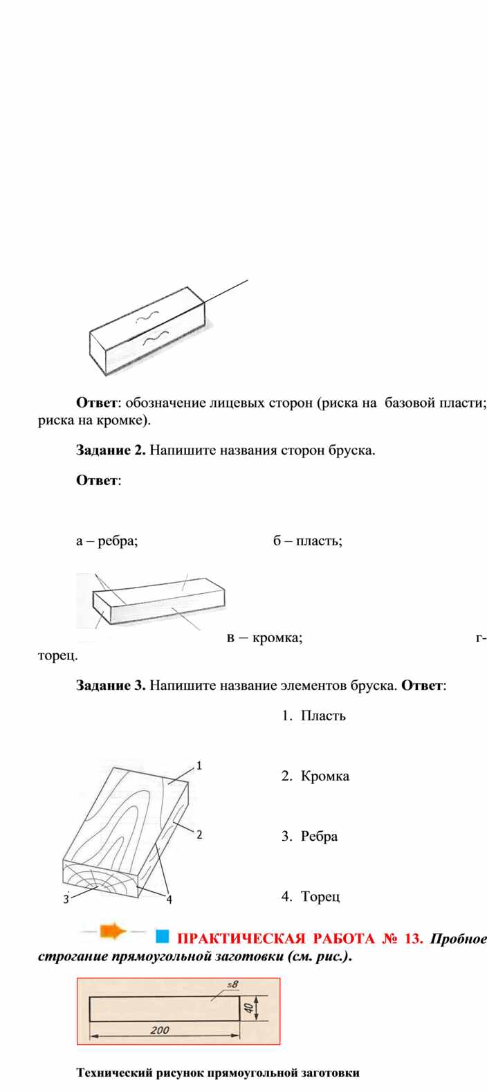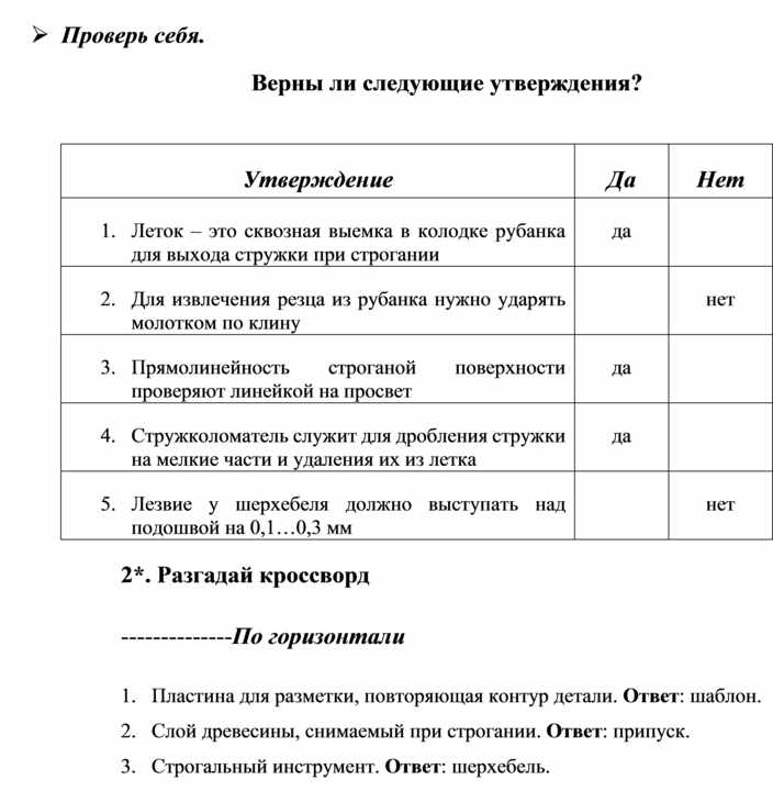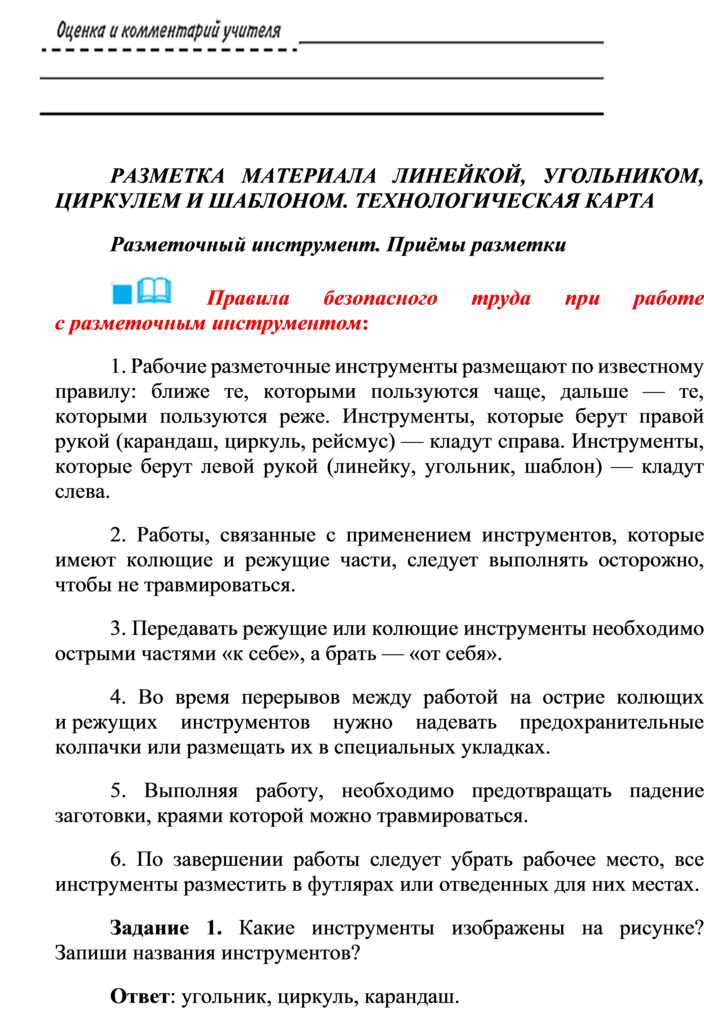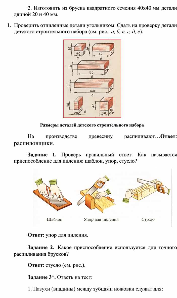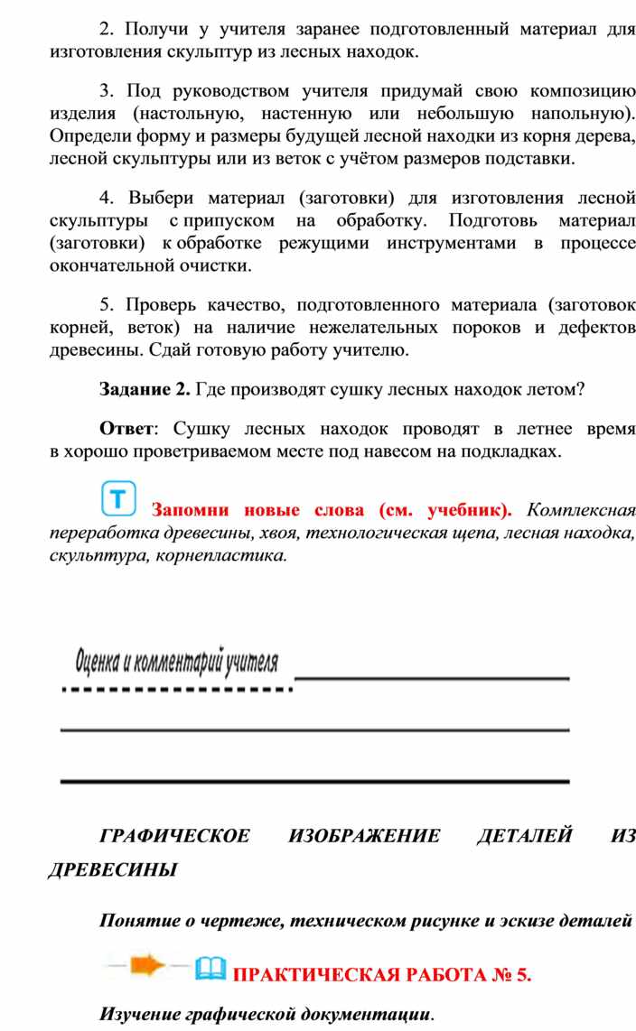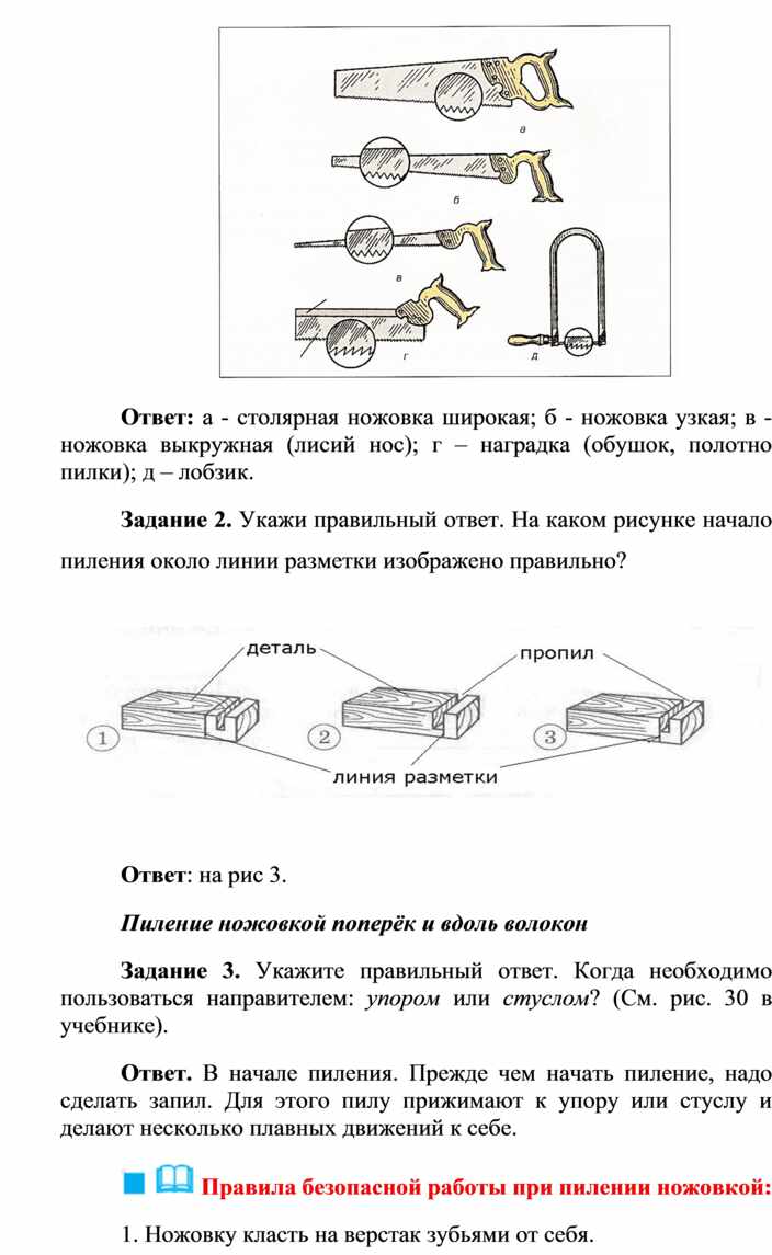 Оборудование и материалы: выставка работ учащихся V класса; верстак столярный, винтовые зажимы столярного верстака; заготовка из древесины длиной 200…300 мм; гребёнка, клинок, комплект инструмента.