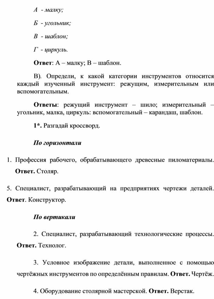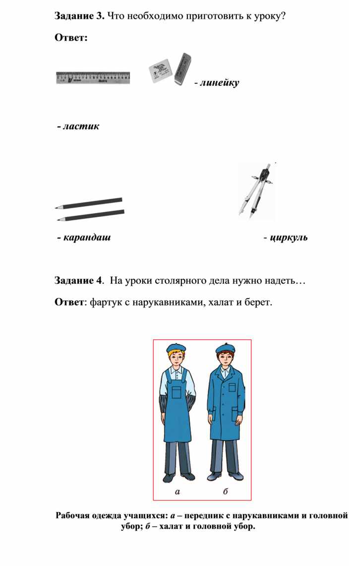 Задание 4. На уроки столярного дела нужно надеть…