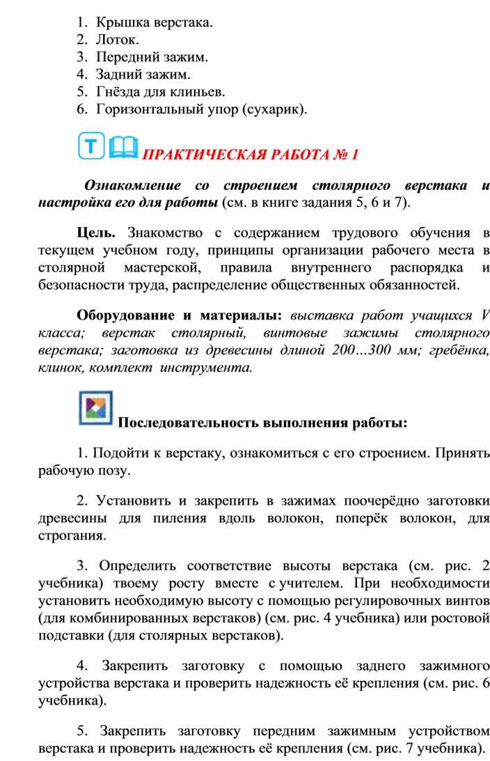 1. Подойти к верстаку, ознакомиться с его строением. Принять рабочую позу.