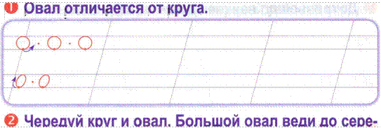 Чередуй круг и овал. Большой овал веди до середины межстрочного