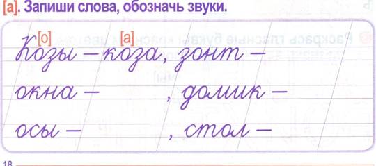 Прочитай слова. Обведи гласные буквы. Какие звуки ты услышал? Запиши их.
