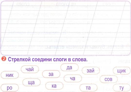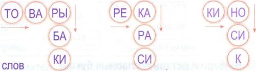 Преврати слог в слово. Покажи стрелкой место буквы в слове. ![]()