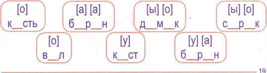 Слова: голо а, арбу ы, поя а, ОНТЫ, ВО ы, гла а, мимо а, пару а, но ы, вя ы.