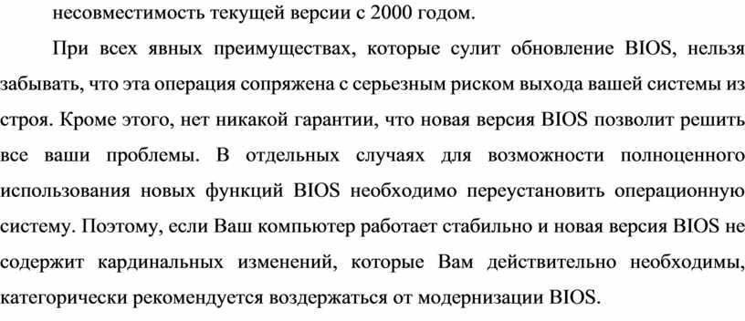 Наконец, недавним поводом к модернизации BIOS могла быть несовместимость текущей версии с 2000 годом.