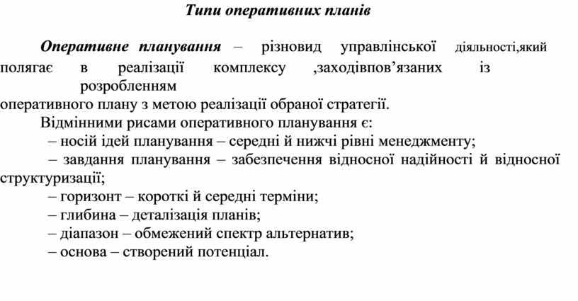 Типи оперативних планів