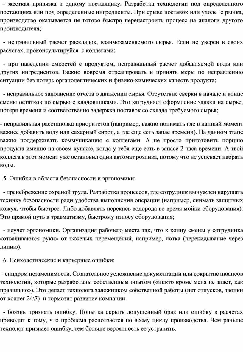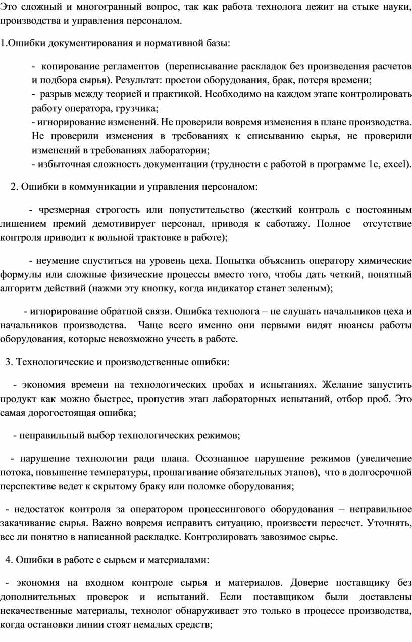 - боязнь признать ошибку. Попытка скрыть допущенный брак или ошибку в расчетах приводит к тому, что проблема расползается по всему циклу производства. Чем раньше технолог признает ошибку, тем больше вероятность ее устранить.