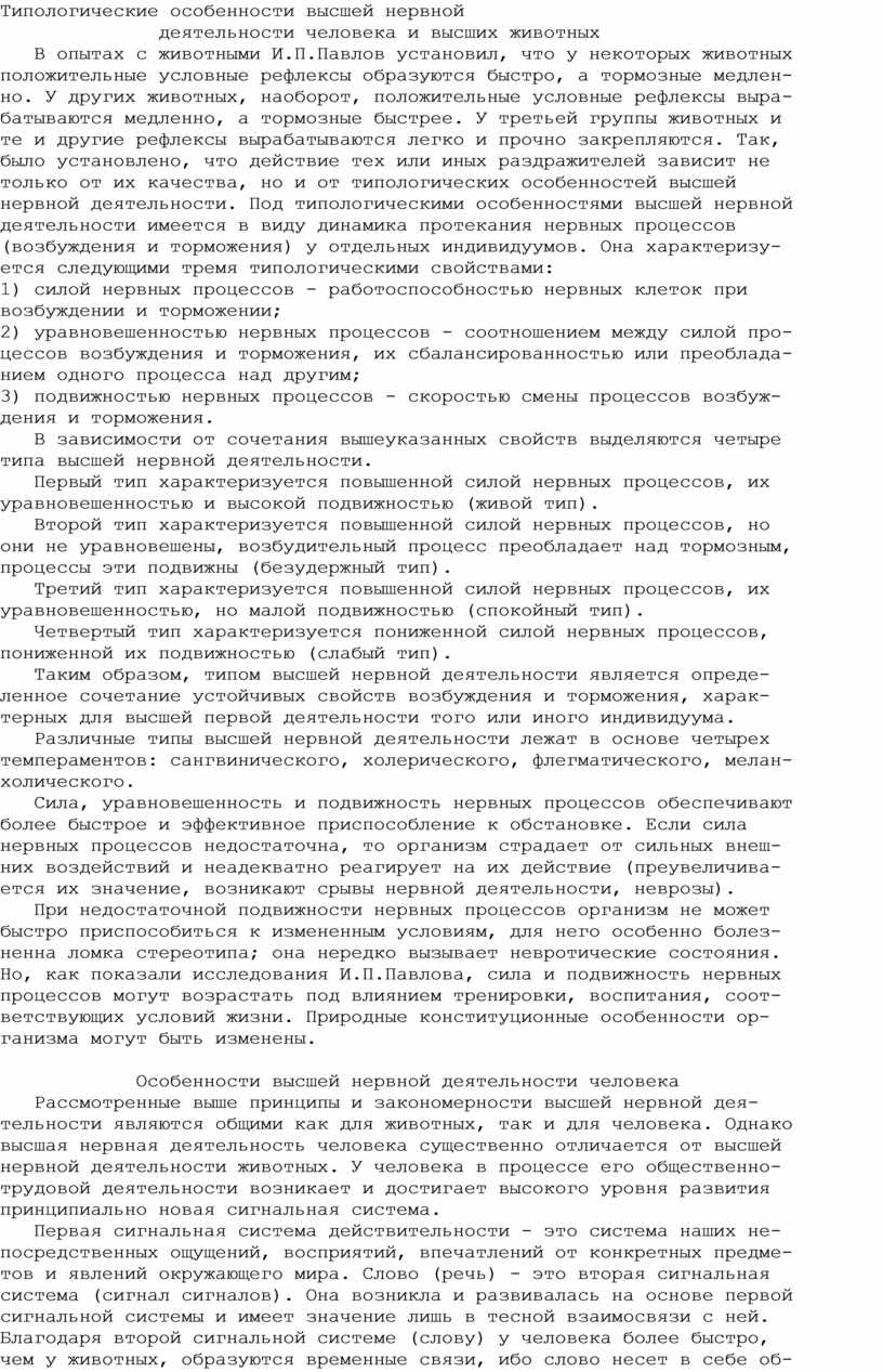 Выше были рассмотрены типологические особенности высшей нервной