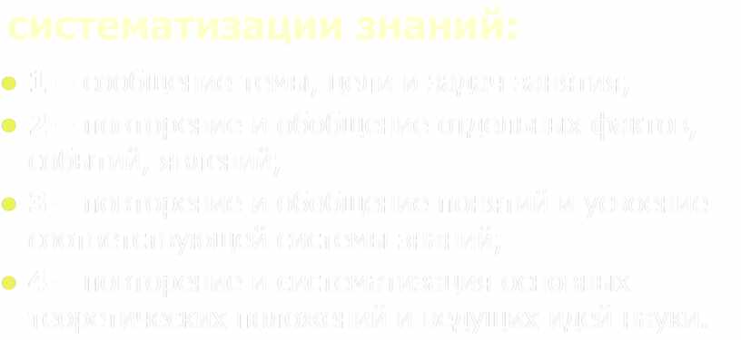 l 4 – повторение и систематизация основных теоретических положений и ведущих идей науки.