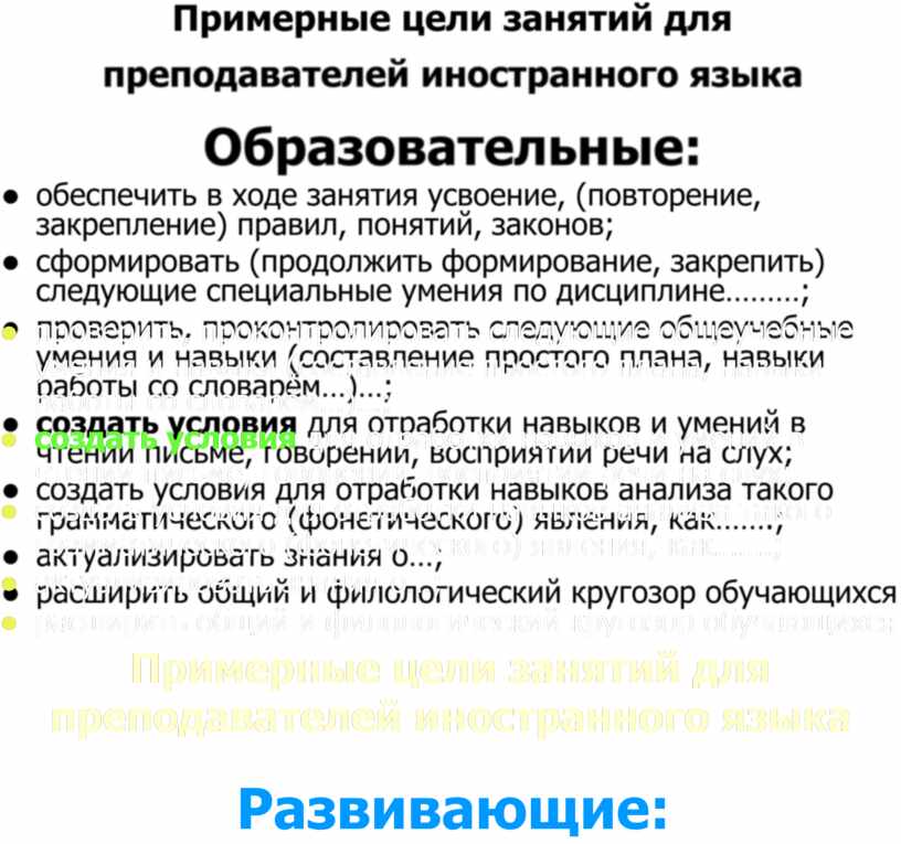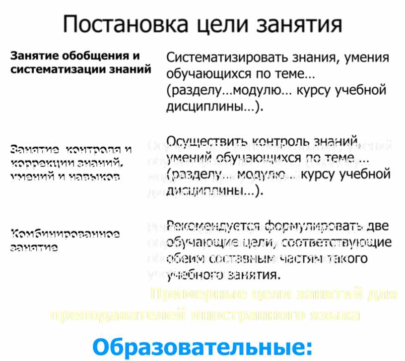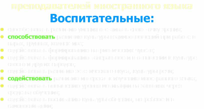 Примерные цели занятий для преподавателей иностранного языка Воспитательные: