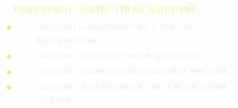 l 5 – закрепление изученного материала на данном занятии и ранее пройденного, связанного с новым;