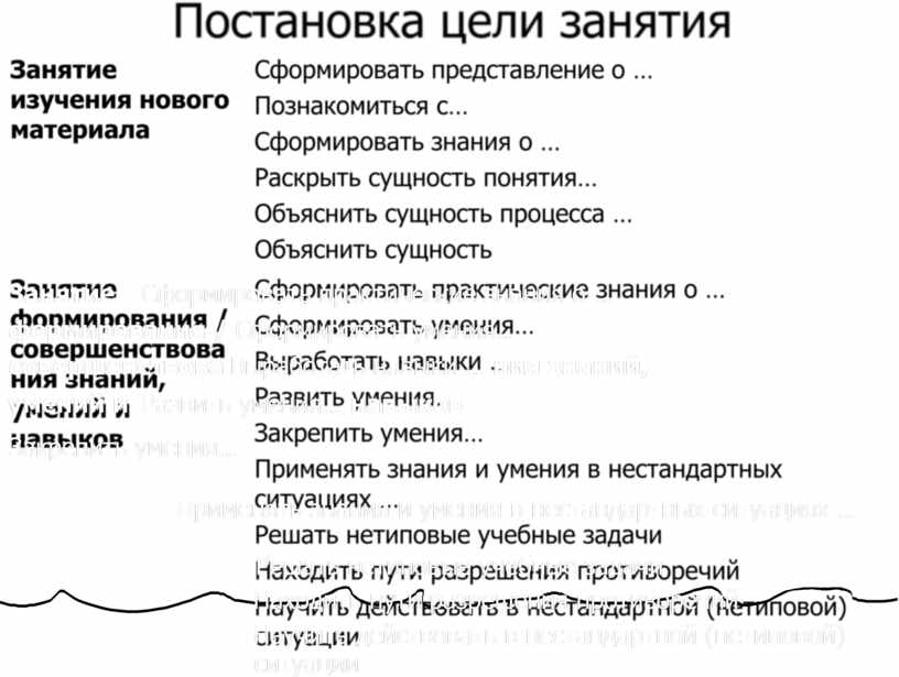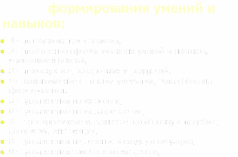 знания о … формирования / Сформировать умения… совершенствова Выработать