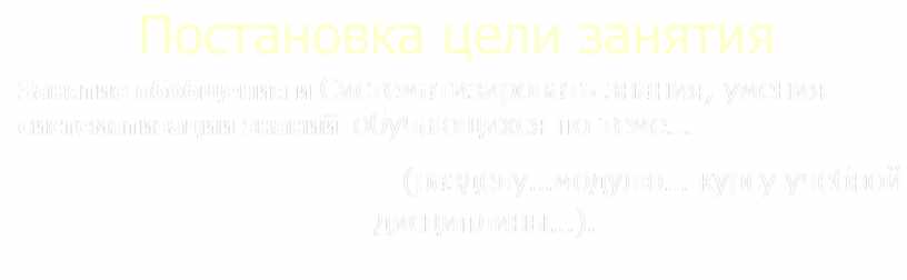 Занятие обобщения и Систематизировать знания, умения систематизации знаний обучающихся по теме…