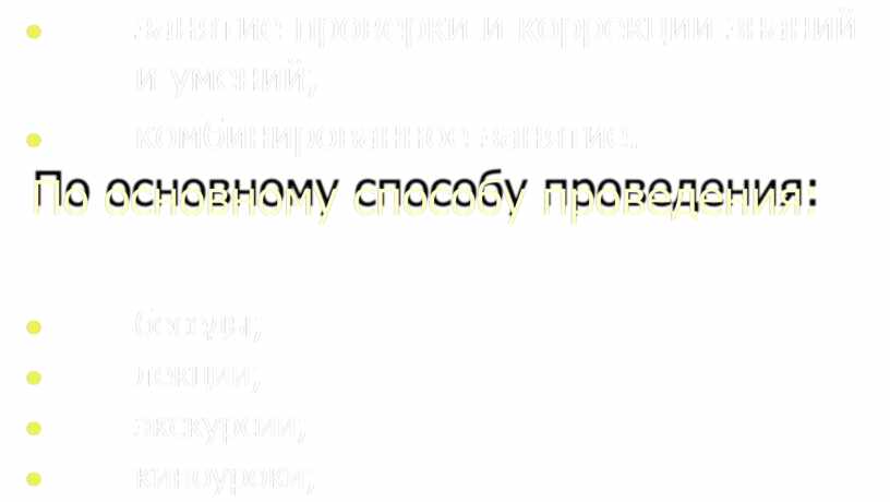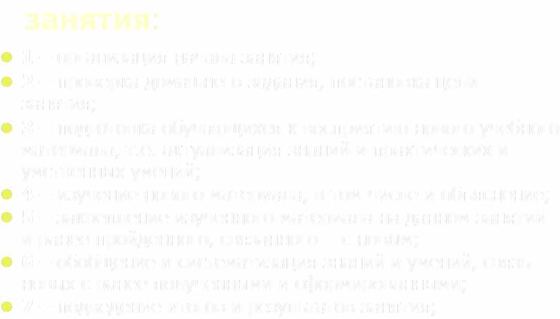 l 7 – выполнение комплексных творческих работ; l 8 – итоги занятия;