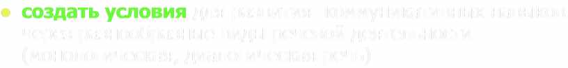 l создать условия для развития коммуникативных навыков через разнообразные виды речевой деятельности