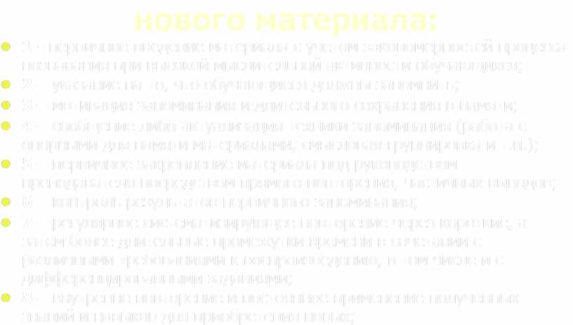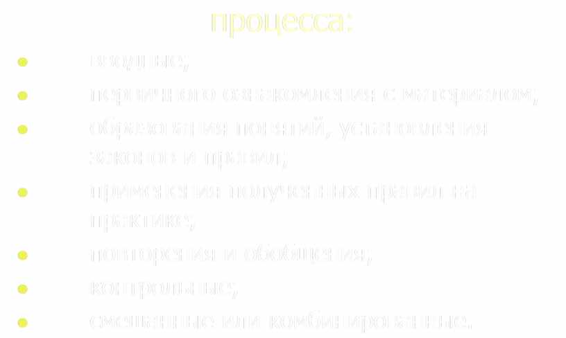 l 5 – первичное закрепление материала под руководством преподавателя посредством прямого повторения, частичных выводов;