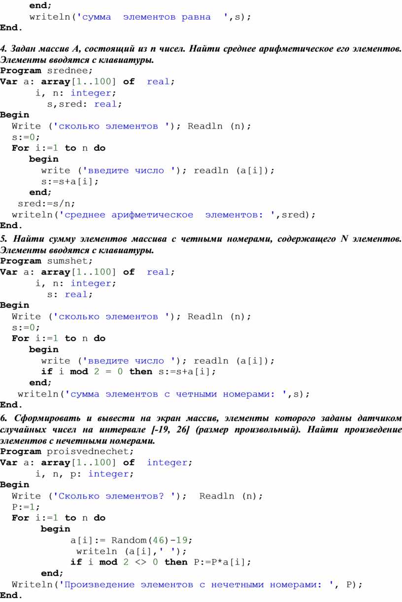 Типовые задачи на Паскале (массивы)